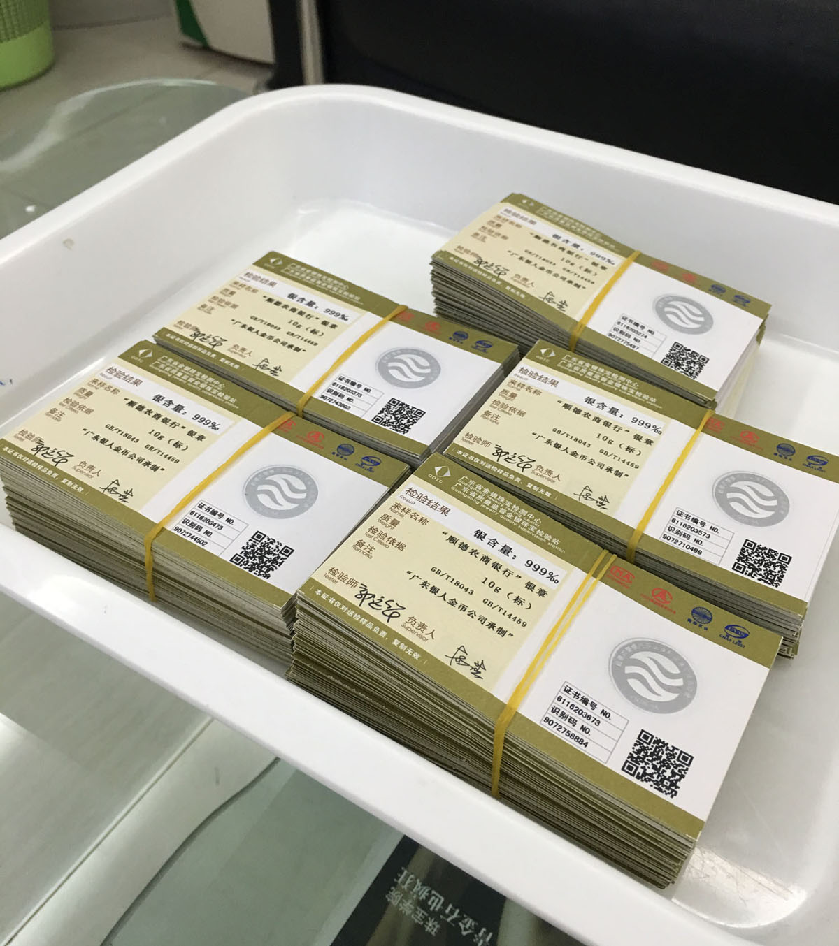 • 純銀銀牌含銀量國家權威機構檢測證書
