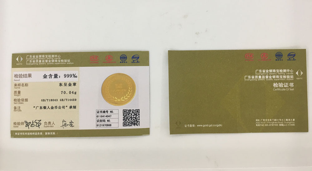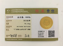 • 金銀紀念幣國家質監部門金銀含量檢測鑒定證書