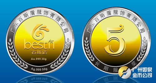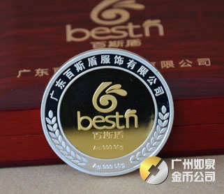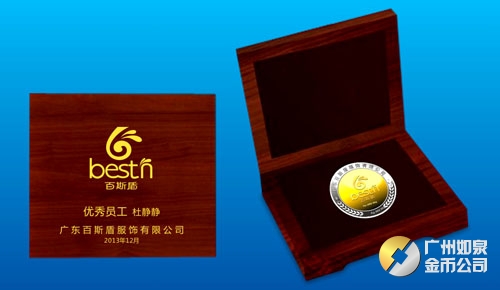 2013年11月廣東百斯盾公司銀包金紀念幣訂做制做銀鑲金紀念章