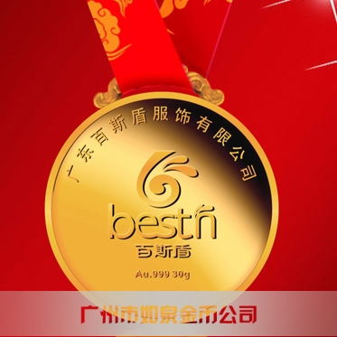 定制廣東百斯盾10年員工定制千足金紀念金牌