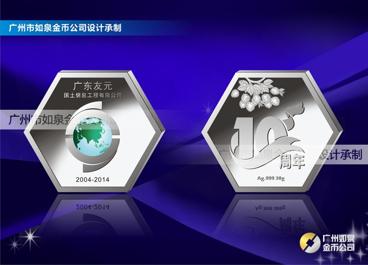 廣州市如泉金幣公司依托上海造幣廠和深圳國寶造幣廠等造幣公司以及金銀制品廠,設計定做紀念幣、紀念章、金銀幣、金銀章、金銀條,采用造幣工藝、選用千足金銀,個性定制金幣、定做銀幣、訂做金條、訂制銀條、制作紀念銀幣、制造紀念金幣、加工紀念銀章、生產紀念金章,純金純銀鑄造、全部國檢、權威檢測。