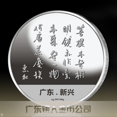 定制“菩提本無樹,明鏡亦非臺,本來無一物,何處惹塵埃。”——《六祖壇經(jīng)》惠能大師名言純銀紀(jì)念幣