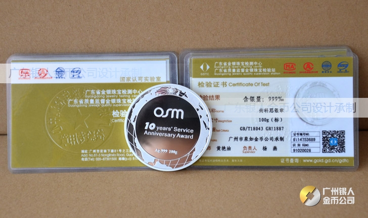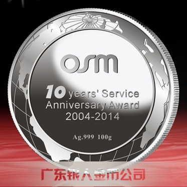 定制瑞典OSM Group-尚科思表彰在崗工作滿十周年服務(wù)獎純銀紀念章
