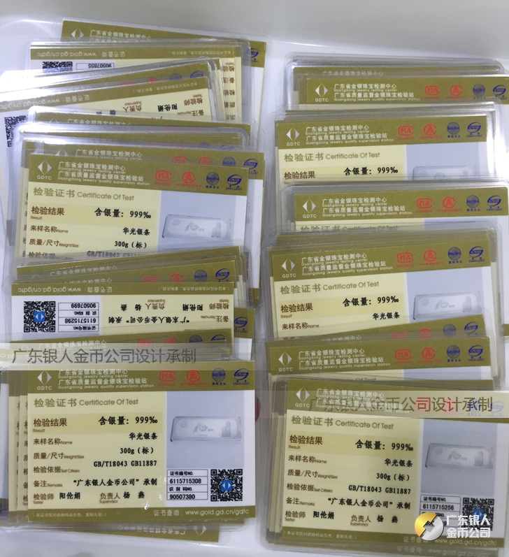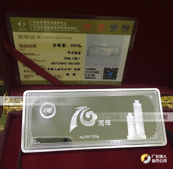 廣東銀人金幣公司承接客戶個性化定制的金銀幣、金銀章、金銀條、金銀牌、金銀盤均由國家質監部門、嚴格檢測、權威鑒定: