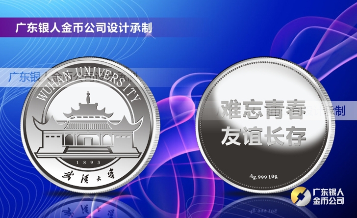 武漢大學同學畢業三十周年聚會留念慶祝活動紀念銀幣定做、純銀紀念幣定制