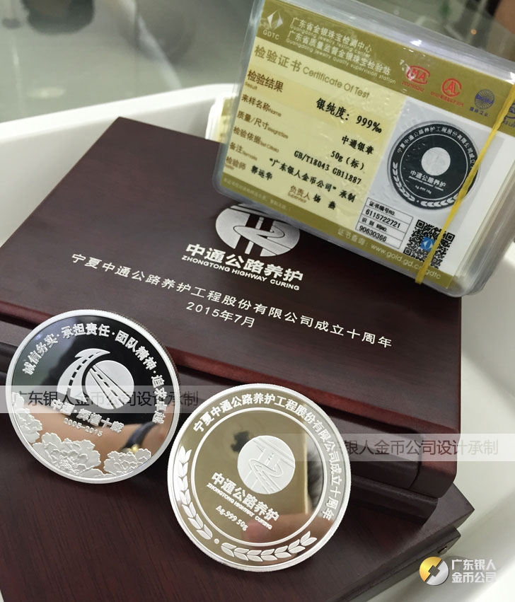 2015年7月定制 寧夏中通公路銀質紀念幣定制、銀幣紀念幣定做