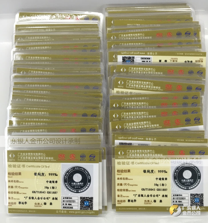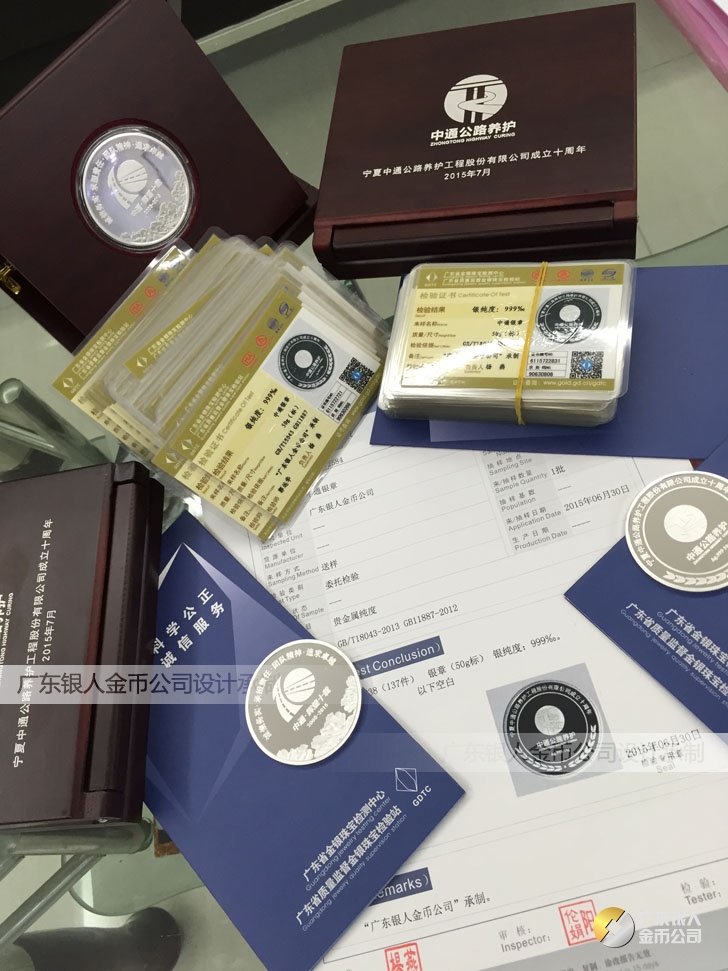 廣東銀人金幣公司承接客戶個性化定制的金銀幣、金銀章、金銀條、金銀牌、金銀盤均由國家質監部門、嚴格檢測、權威鑒定: