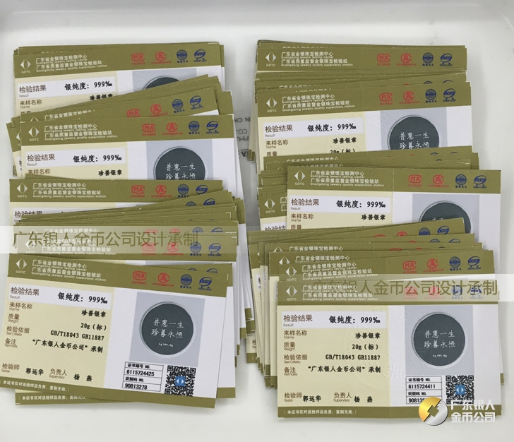 廣東銀人金幣公司承接客戶個性化定制的金銀幣、金銀章、金銀條、金銀牌、金銀盤均由國家質監部門、嚴格檢測、權威鑒定:
