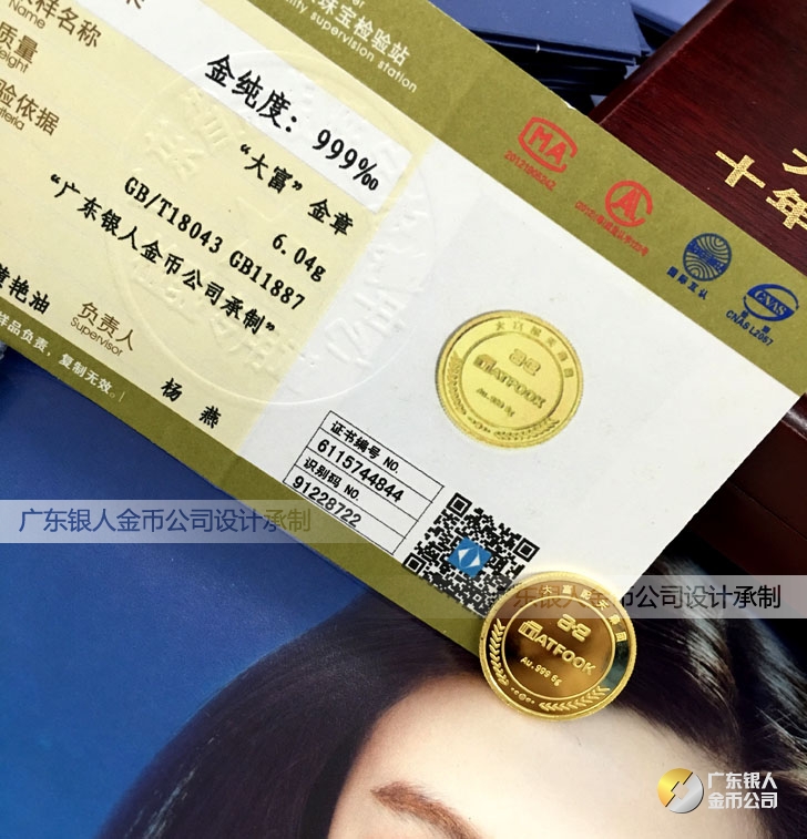 廣東銀人金幣公司承接客戶個性化定制的金銀幣、金銀章、金銀條、金銀牌、金銀盤均由國家質監部門、嚴格檢測、權威鑒定: