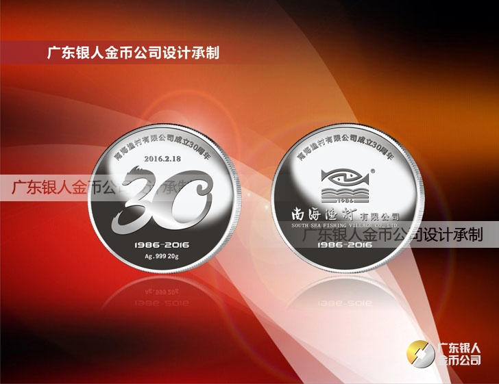 2016年1月定制 南海漁村成立30周年AU999純銀紀念幣制作