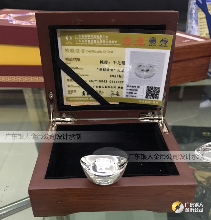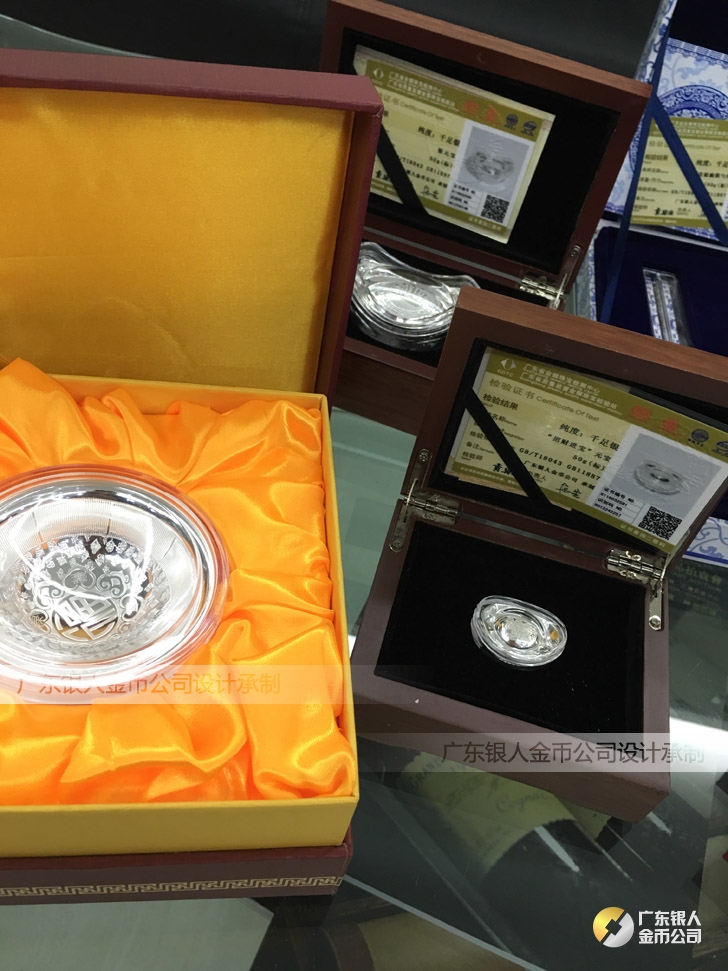 廣東銀人金幣公司承接客戶個性化定制的金銀幣、金銀章、金銀條、金銀牌、金銀盤均由國家質監部門、嚴格檢測、權威鑒定: