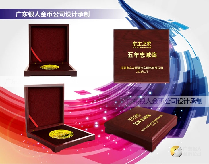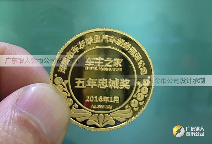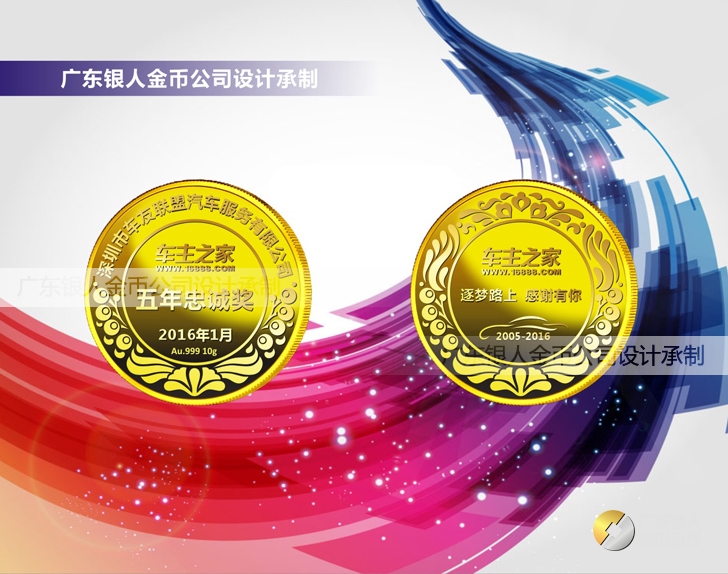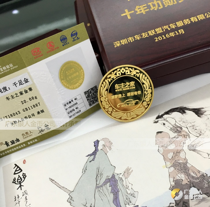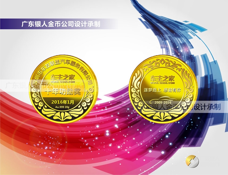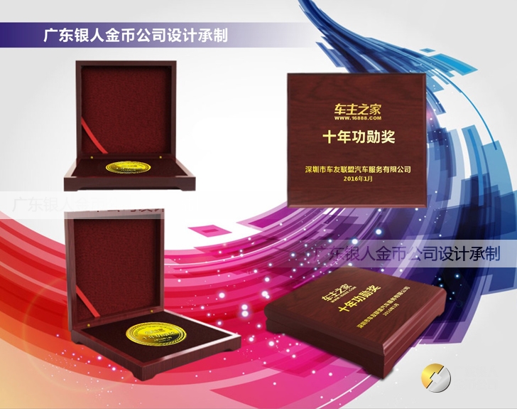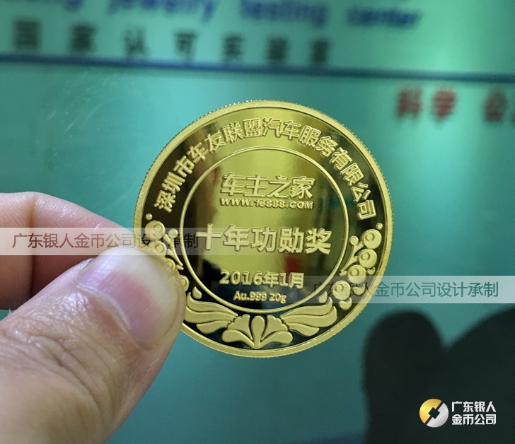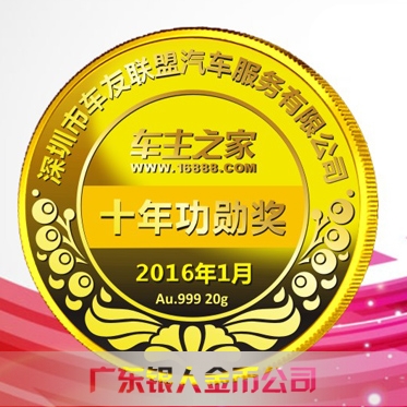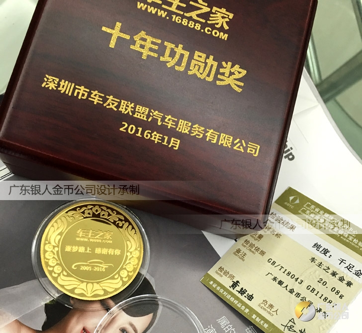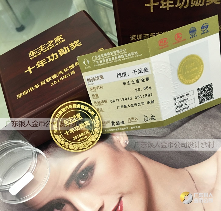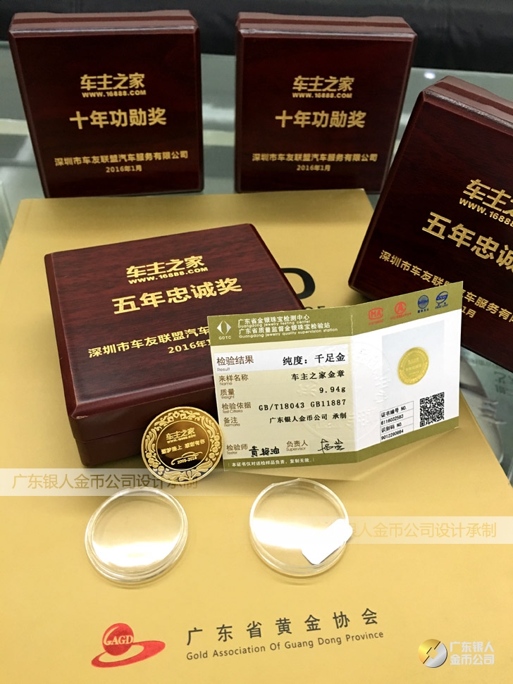 2016年1月訂制 深圳車主之家十年功勛獎黃金純金獎牌訂做