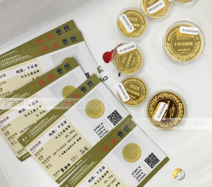 廣東銀人金幣公司承接客戶個性化定制的金銀幣、金銀章、金銀條、金銀牌、金銀盤均由國家質監部門、嚴格檢測、權威鑒定: