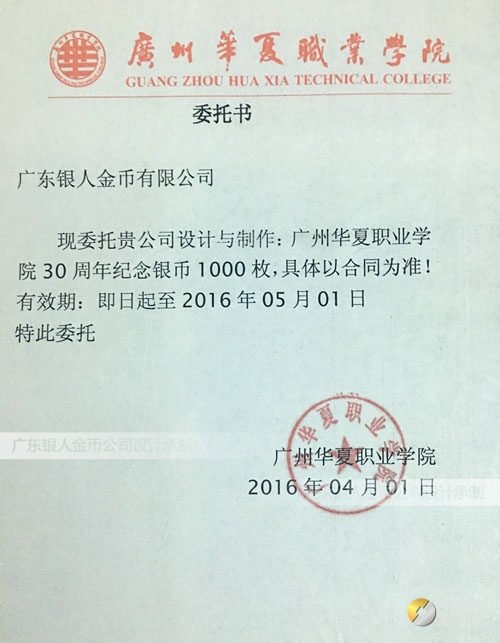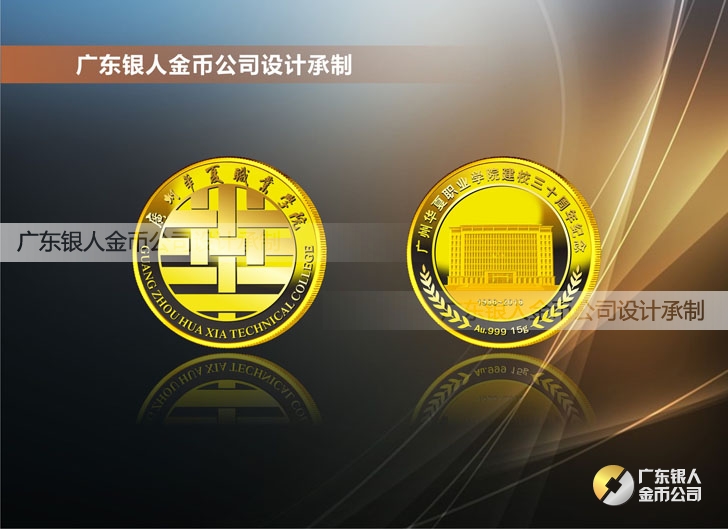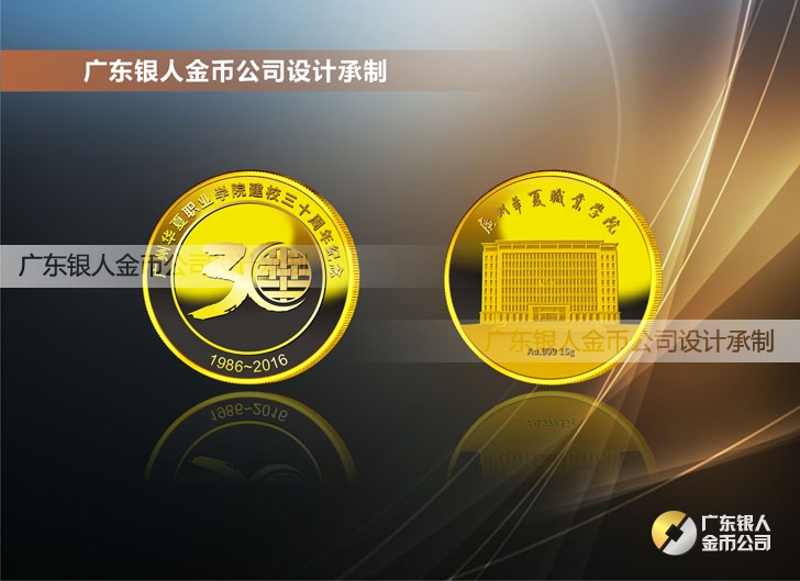 2016年4月定制 廣州華夏職業(yè)學(xué)院建校30周年金銀章定制