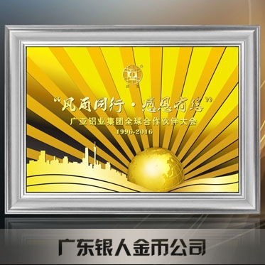 2016年4月定制 廣亞鋁業全球合作伙伴純金金畫浮雕金箔畫