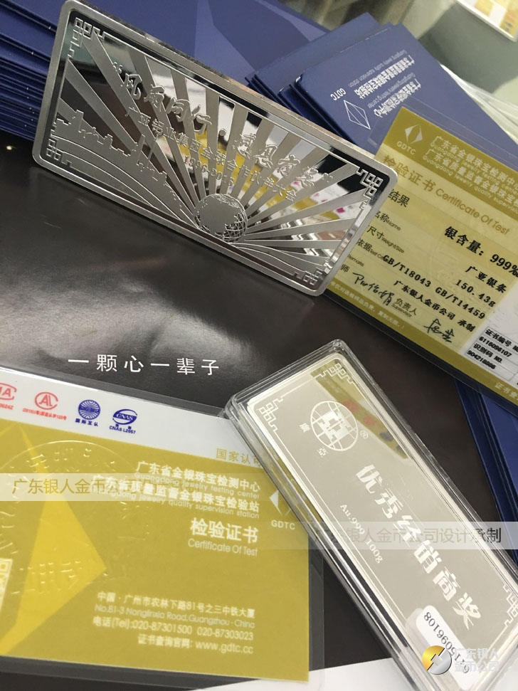 廣東銀人金幣公司承接客戶個性化定制的金銀幣、金銀章、金銀條、金銀牌、金銀盤均由國家質(zhì)監(jiān)部門、嚴(yán)格檢測、權(quán)威鑒定: