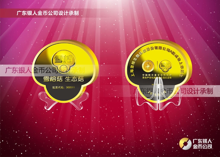 2016年4月定制 上海雪榕企業上市紀念金磚定制金鋌加工制作