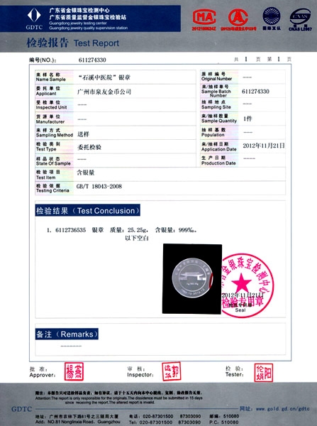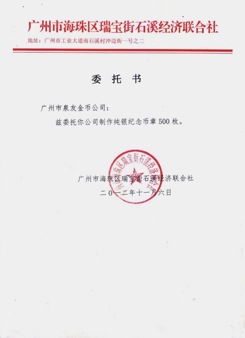 2012年11月海珠區石溪村委會Ag.999純銀紀念章定制