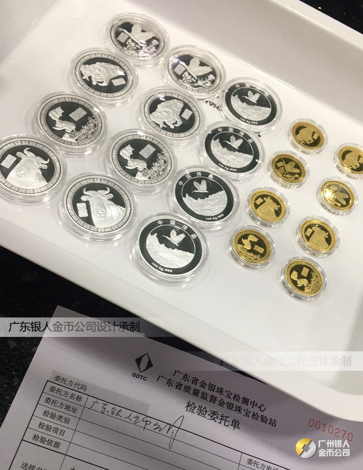 廣東銀人金幣公司承接客戶個性化定制的金銀幣、金銀章、金銀條、金銀牌、金銀盤均由國家質監部門、嚴格檢測、權威鑒定: