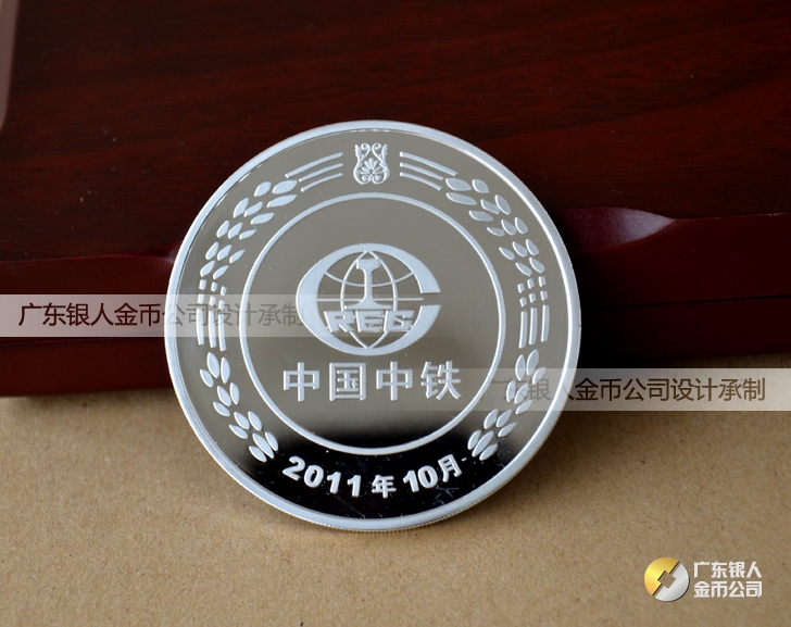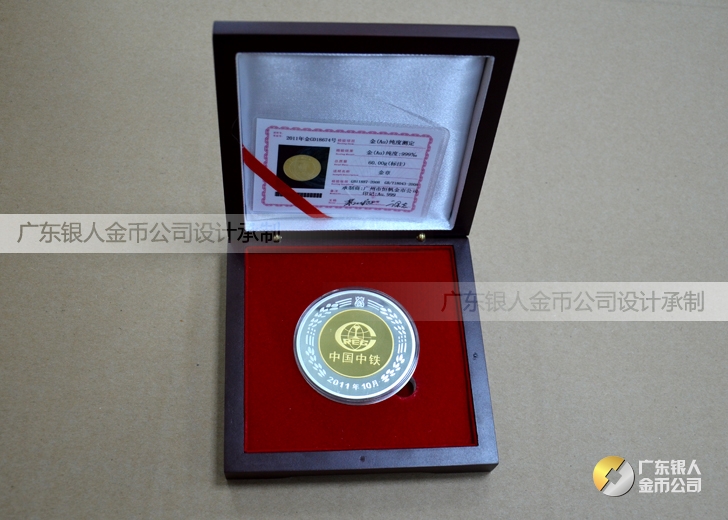 2011年9月中國中鐵純銀鑲純金紀念章定做,銀鑲金紀念幣定做