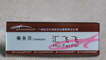 廣州白云國際機場——機場空姐胸牌,工作人員工號牌、2009年度“旅客服務(wù)提升”形象標(biāo)識胸牌的設(shè)計與制作。