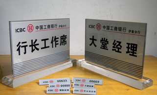 中國工商銀行黑龍江省分行——黑龍江省分行、各地市支行工作人員胸牌、營業部員工工牌、營業員工號牌及銀行服務窗口桌牌、柜臺水晶臺牌的設計與制作。