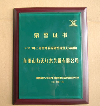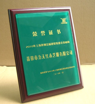 福建省對外貿易經濟合作廳——為該廳提供2009年度榮譽證書獎牌及2010年福建省參與2010年上海世博會籌委會榮譽證書、及其2010年上海世博會福建館支持機構獲獎單位高檔獎牌的設計與制作。