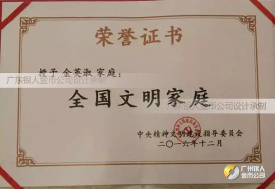 關于表彰第一屆全國文明家庭的決定名單-獎牌證書(圖)