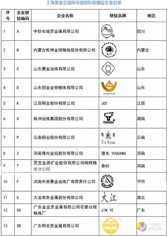 廣東銀人金幣公司發布上海黃金交易所可以提供標準金條、標準銀條、標準金磚、標準銀磚、標準金錠、標準銀錠等金條現貨、銀條現貨的指定供貨單位,并經上海黃金交易所目前可提供標準金錠、金條、銀錠企業均經過嚴格認證,認證企業名錄及核實過的官方法定國標認證公司名稱、企業名單。