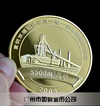 首鋼項目純金紀念幣定制,純金紀念章定制,金幣制作