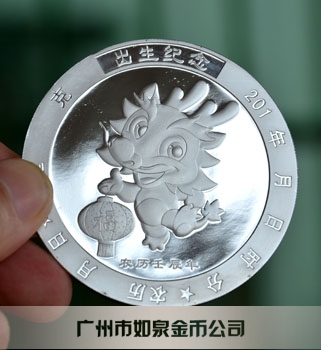小孩出生紀念銀幣定制,孩子周歲滿月紀念純銀紀念章定做