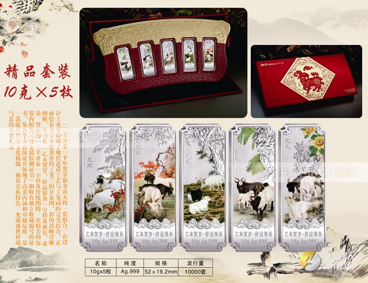 【Au.999純銀羊年賀歲銀條重量規(guī)格】 5克x5根、10克x5根、20克x5根盒裝、套裝