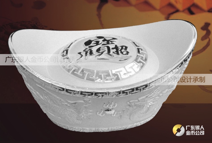 招財進寶銀元寶制作、純銀銀元寶定制、定做純銀銀元寶